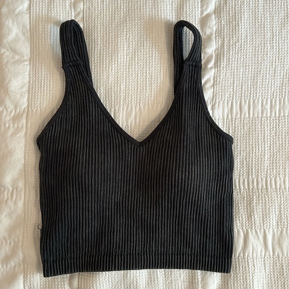 Washed dark gray ribbed tank top - Removable padding - bought from a boutique in Nashville - Size XS