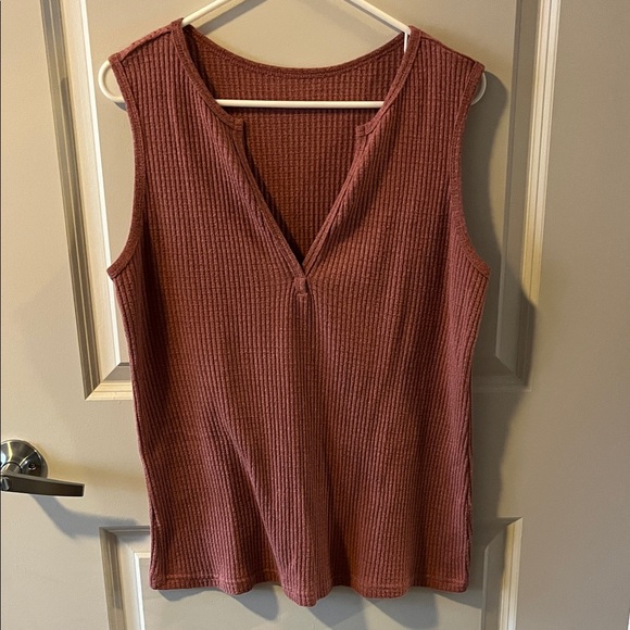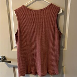 Cute sleeveless top with ribbed stripe design. Rusty brick red/burgundy color, super soft!