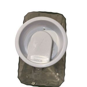 • White plastic lid with easy pour spout helps prevent spills and keeps contents fresh