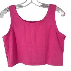 Ribbed Two Piece Outfit Pink Shorts Tank Sleeveless Scoop Neck Womens Size L
