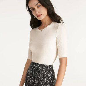 Longer style short sleeved. Stretchy. Thin & very fitted. Best for xsmall.