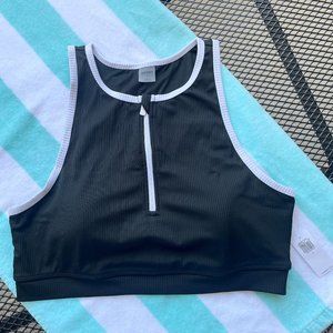 Ribbed Zip-Front Longline Bikini Swim Top NWT