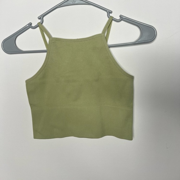 Green Ribbed bib Crop Cami fits XS through XL very stretchy material