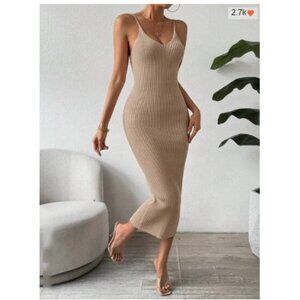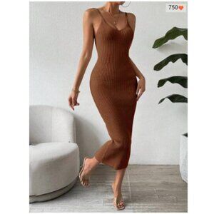 Ribbed knit light-weight sweater dress midi fitted black
