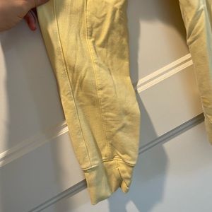 Unknown brand, unknown size (estimated S) yellow ribbed pullover.