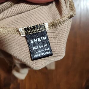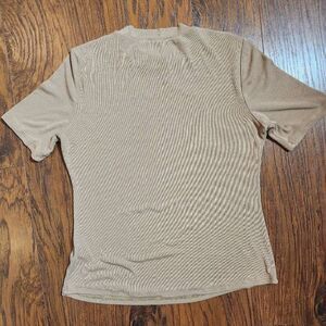 Tan ribbed short sleeved crewneck t-shirt. Size juniors large.