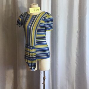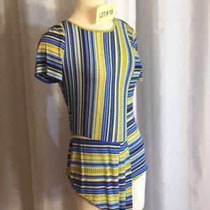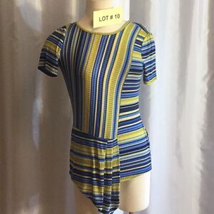 Ribbed knit striped pleat front small