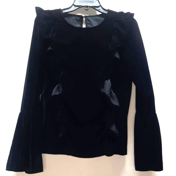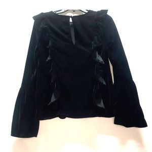 Ribbon Designs Black Velour Ruffle Long Bell Sleeves Dressy Top See measurements