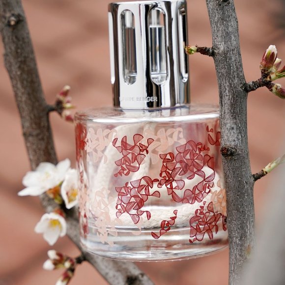 he delicate patterns on the Pure Ribbon Lampe Berger Gift Set resemble dancing ribbons. These contemporary lines add dynamic embellishment in reddish hues that offset the transparent glass to bring a warm, colorful touch into your home. With its stature and shine, the straight silver metal cap adds a stately adornment. Use this lamp with the set’s Vanilla Gourmet fragrance to start purifying and perfuming your home. Gourmet, aromatic notes of rum enliven the subtle sweet accords of vanilla bean