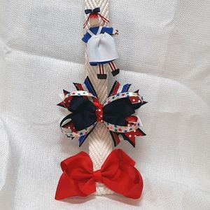 ▪︎Americana multi-colored hair bow made of grosgrain and silk ribbon, partially covered alligator clip (5" x 4")