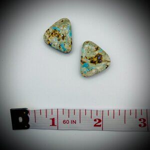 Ribbon Turquoise Cabochon Pair — Backed Freeform Triangles