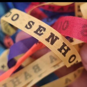 A "fita do senhor do bonfim" is essentially a Brazilian "wish bracelet" - a colored ribbon with the phrase "Lembrança do Senhor do Bonfim da Bahia" (meaning "Remembrance of the Lord of Bonfim of Bahia") that people tie around their wrist with three knots, making a wish with each knot, and believing their wishes will come true when the ribbon naturally falls off; it's a symbol of faith and good luck connected to a religious figure in Bahia, Brazil.