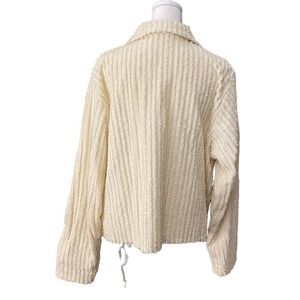 Ribbons & Spice Cream Long Sleeve Button Up Ribbed Detail Shirt Blouse Sz Large
