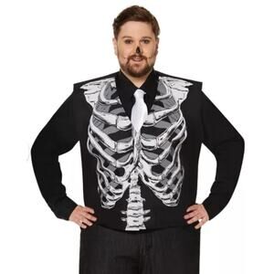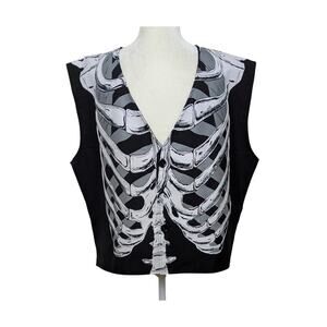 Ribcage Bones Vest Black White Button Adult Halloween Costume One Size XXL