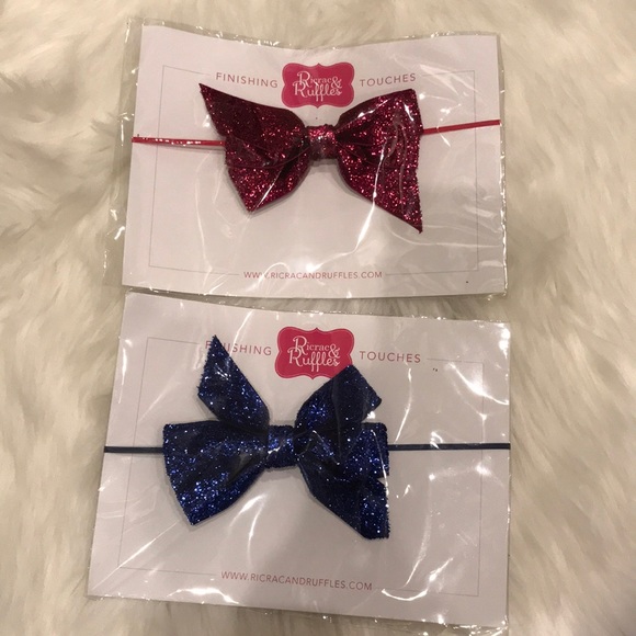 Pink and Blue Glitter Ric Rac and Ruffle Headbands