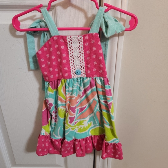 18m. RicRac Ruffles Dress. straps tie on shoulders