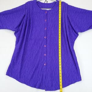 Riccardo E Barone Purple Crinkle Tunic Top Button Women 22 Dolman Short Sleeve