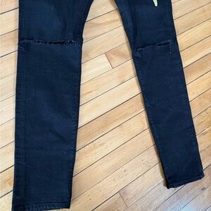Ricchezza black denim embroidered patch work lightning bolt jeans size 34. GUC. MSRP-$350. Streetwear statement piece studded crown eagle