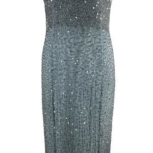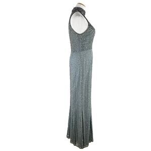 Ricci Wear Halter Neck Sequin Embellished Evening Gown Gray Silver Size M