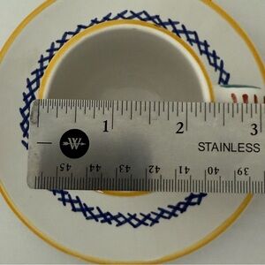 Adorable Ricco Deruta Italian Espresso Cup & Saucer set by Sur La Tab is a stylish and elegant addition to any kitchen or dining room. Made in Italy from high-quality ceramic, this set includes a saucer and an espresso cup, perfect for enjoying your favorite coffee in a sophisticated manner. In excellent condition with one small flea bite on cup rim-see photo.