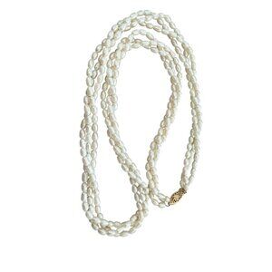 Rice Freshwater Pearls Multistrand necklace 14K gold clasp Vintage