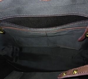 A sophisticated, rich brown leather tote was purchased, custom-engraved with 'E MK.' Perfect for carrying your daily essentials in style. lots of pockets and compartments.