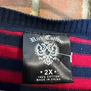 Rich Cotton Striped V-Neck Pullover Sweater Plus Size 2X Red Blue Colorblock