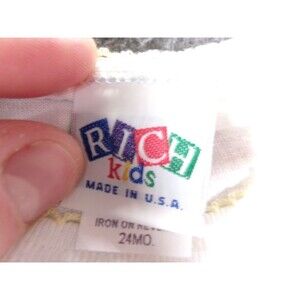 Rich Kids Baby 24M Yellow Short Sleeve Romper Maine Embroidered Made in USA Pre-owned overall good condition with light surface wear and faint discoloration visible on the front near the embroidered MAINE. Snaps and seams appear intact. See photos for close-up views of the tag, embroidery, and condition.