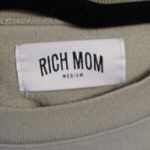 Rich Mom Embroidered Pullover Long Sleeve Sweatshirt Sage Green SZ Medium