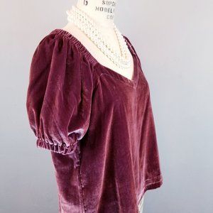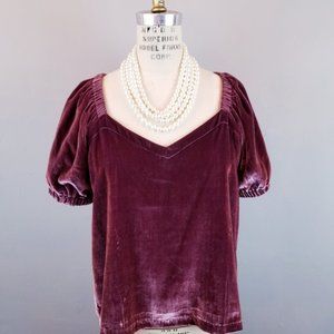 Rich Plum Velvet Blouse with Short Sleeves Women's Size Medium by Loft NEW w/Tag