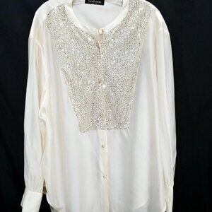 Rich Radi Q Sequin-Stitched French-Style Beige Shirt Size 2XL