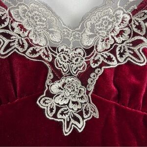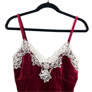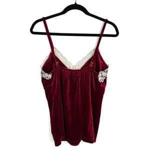 Rich Red Velvet Lace Trim Babydoll Empire Camisole Tank Top XL Coquette Holiday