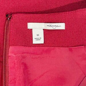 This classic lined pencil skirt (Size 10) comes in a striking jewel-tone red that gives instant sophistication to both professional and festive looks. Gently worn only a handful of times and in excellent condition, it features a lightly structured stretch fabric, full lining, and a clean, modern silhouette that flatters without feeling restrictive. The rich ruby red shade pairs beautifully with black, cream, gray, navy, metallics, and winter florals — ideal for office holiday gatherings, seasonal celebrations, or everyday cold-weather styling.