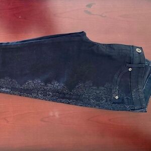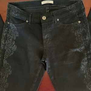 Comfy, soft, leather-feel, premium, dark jeans with design