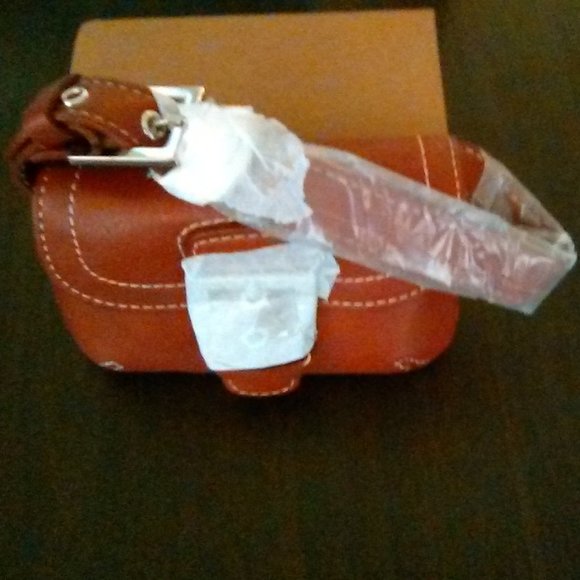 Communication couture. Carry a cell phone, PDA, music player, or other small devices in style with this handy bag. It easily clips onto your regular purse or belt loop and has a zippered section for credit cards, coins, your ID, or cash. From Lori Greiner.