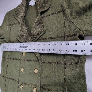 Rich and Levy Womens Medium Green Double Breasted Knit Work Blazer Jacket