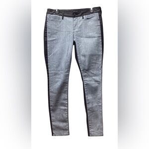 EUC. Fun two toned stretch denim jeans. Frosted indigo front and black wax back. Midrise. Size 29. Perfect for dressing up. Waist is 30”. Inseam is 31”. Leg opening is 5”. Cotton/spandex.