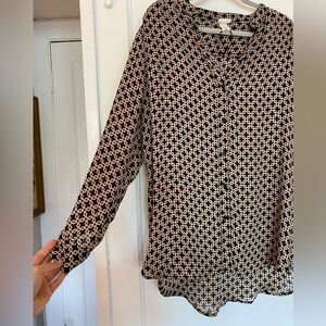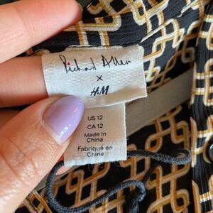 Richard Allen x H&M Long Sleeve Gold Pattern Button Down Blouse Size 12
