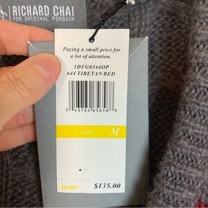 NWT- Richard Chai for Original Penguin Acrylic and Wool Blend Burgundy and Grey Stripe button front Cardigan- Sz M