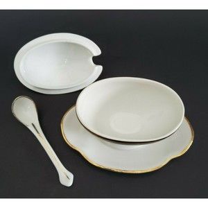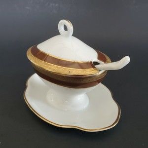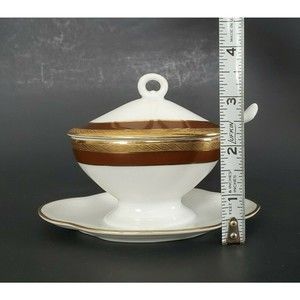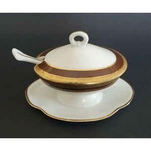 Richard Ginori Palmero Brown China Mustard Pot Tureen with Underplate & Spoon