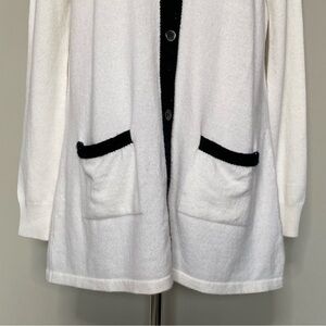 NWT Richard Grand Cashmere Long Cardigan Sweater in Ivory and Black, size M