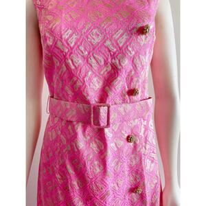 Richard Kaplan 1960s Pink Gold Metallic Thread Belted Vintage Shift Dress Sz 10