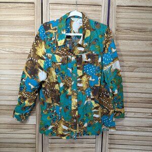 Richard Malcolm 100% Linen Colorful Abstract Peacock Print Jacket Size 1X