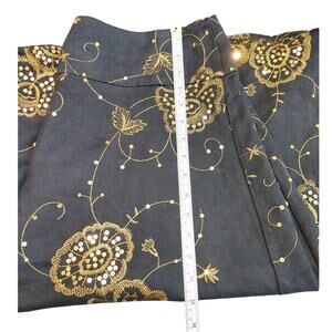 Richard Malcolm A LIne Midi Skirt Floral Sequin Embroidered Gold Black Womens 14