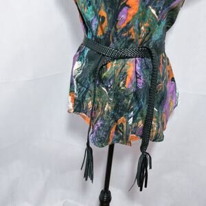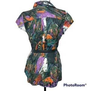 Richard Malcolm Colorful Abstract Peacock Feather Linen Top With Belt S