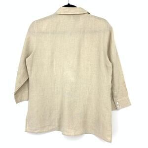 Richard Malcolm Irish Linen Button Front Shirt Womens M Beige Embroidered Floral