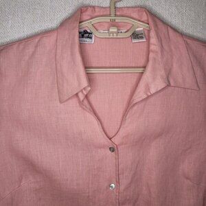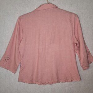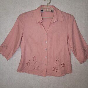 Richard Malcolm Irish Linen V Neck Eyelet Button Blouse Women Large Pink