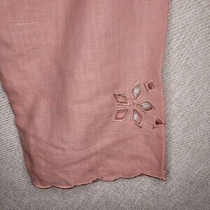 Richard Malcolm 100% Irish Linen V Neck Eyelet Button Blouse Women Large Pink Dusty Pink. Embroidered Eyelet Details on Shirt and Sleeves