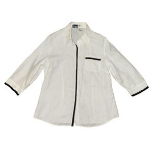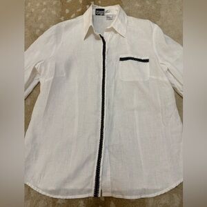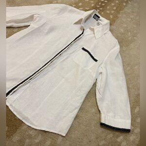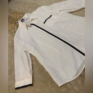 Richard Malcolm Irish Linen white black trim button down women’s size large