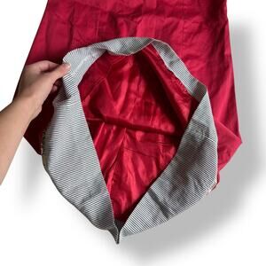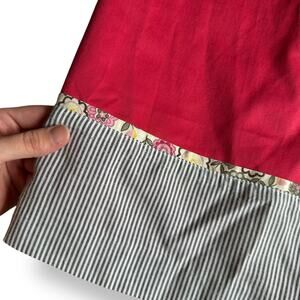 • Color: Red with striped + floral contrast hem and neckline